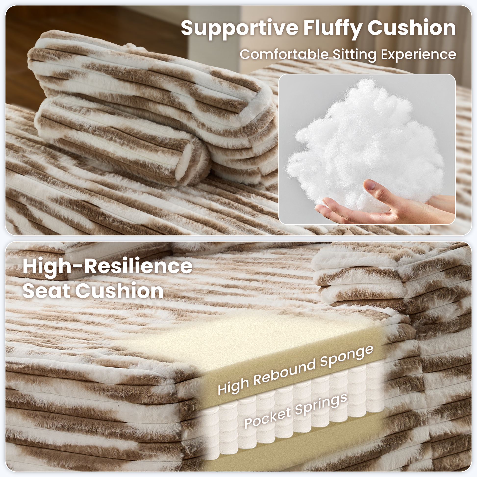 - Luxurious Faux Fur Fabric: Swathed in premium faux fur fabric with a soft striped texture, this lounge offers an indulgent feel and elegant appeal.