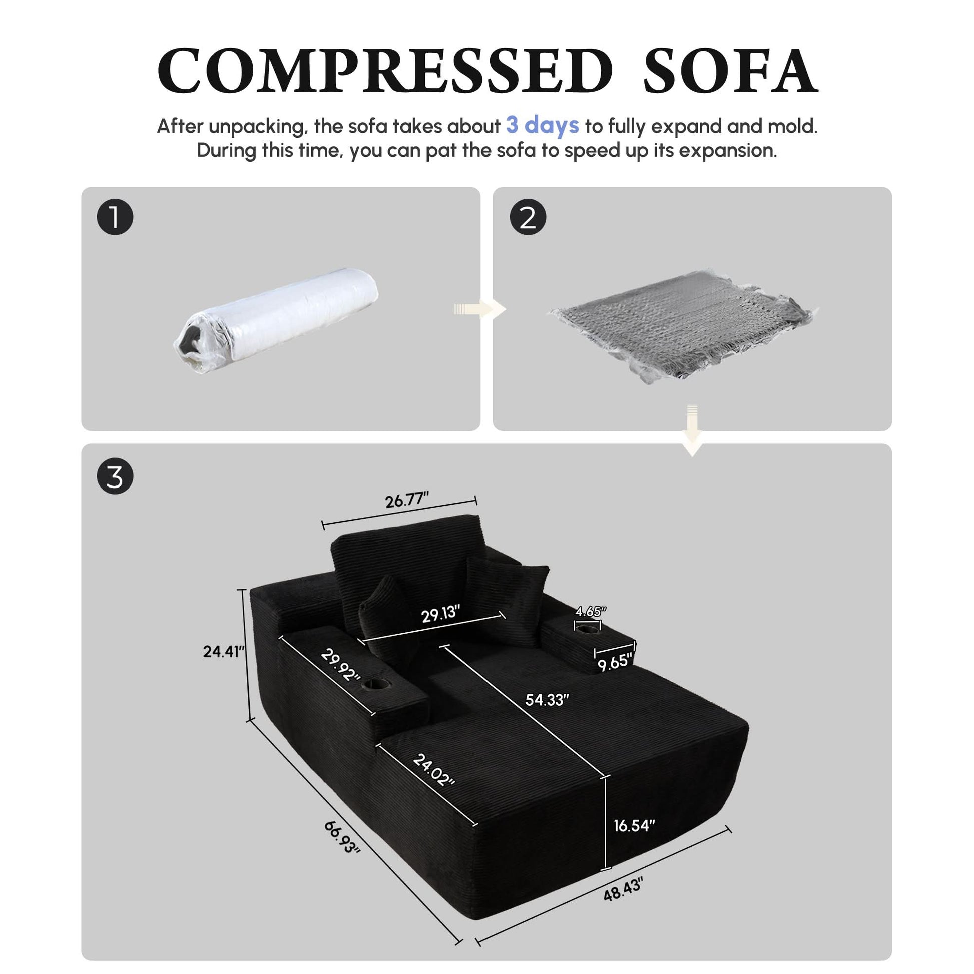No Assembly Required:Vacuum-packed for easy setup—just unpack and let it sit for 24–48 hours to fully expand. Lightly pat each section to restore fluff and elasticity.