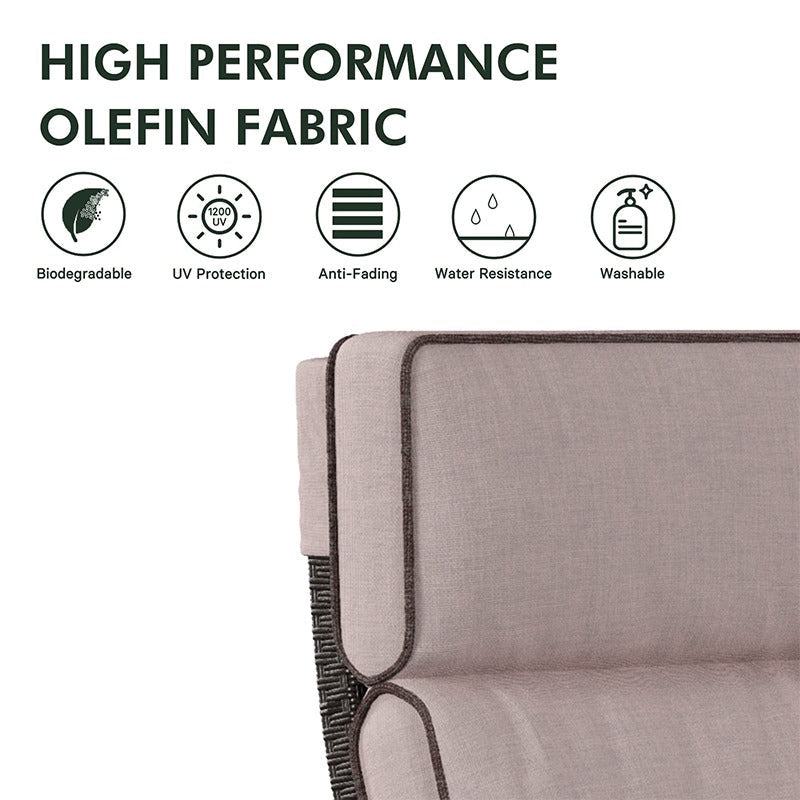 | Comfortable seat cushions feature super soft, fade-resistant, and easy-to-clean olefin fabric. | Our handwoven double-strand resin wicker is rated at 1500 UV hours, beautiful, more sturdy and has superior resistance to the sun, rain, or fade. |